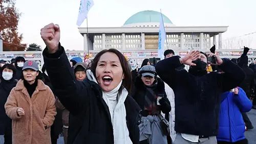 নানা নাটকীয়তার মধ্য দিয়ে দক্ষিণ কোরিয়ায় সামরিক শাসন প্রত্যাহারের ঘোষণা দিলেন দেশটির প্রেসিডেন্ট ইউন সুক ইয়োল। এতে দেশটির রাজধানী সিউলে পার্লামেন্ট প্রাঙ্গণে উল্লাসে ফেটে পড়েন জনতা। গতকাল গভীর রাতে দেশটির রাষ্ট্রীয় টিভি চ্যানেলে সামরিক শাসন জারির ঘোষণা দেন প্রেসিডেন্ট। এর কয়েক ঘণ্টা পরেই আবার তা প্রত্যাহারের ঘোষণা দিয়ে এক নাটকীয় দৃশ্যের অবতারণা করলেন তিনি। উত্তর কোরিয়ার কমিউনিস্ট বাহিনীর হাত থেকে রক্ষা করতেই সামরিক শাসন জারির কথা জানিয়েছিলেন প্রেসিডেন্ট ইউন। তিনি রাষ্ট্রবিরোধী চক্রান্ত নির্মূলের প্রয়োজনীয়তার কথা জানান। এ খবর দিয়েছে অনলাইন বিবিসি। এতে বলা হয়, স্থানীয় সময় ভোর সাড়ে ৪টার দিকে সামরিক শাসন প্রত্যাহারের ঘোষণা দিয়ে প্রেসিডেন্ট বলেছেন, মাত্র কয়েক মুহূর্ত আগে ন্যাশনাল অ্যাসেম্বলি থেকে জরুরি অবস্থা তুলে নেয়ার দাবি জানানো হয়েছে। যার ভিত্তিতে আমরা সামরিক শাসন পরিচালনার জন্য মোতায়েন করা সেনাবাহিনীকে প্রত্যাহার করে নিয়েছি। সামরিক শাসন জারি জনতার মধ্যে বিক্ষোভের জন্ম দেয়। ওই ঘোষণার পর পরই সিউলের রাস্তায় বেরিয়ে আসেন তারা। পরে বিক্ষোভকারীরা রাজধানীতে অবস্থিত দেশটির পার্লামেন্টে প্রাঙ্গণে জড়ো হয়ে বিক্ষোভ করেন তারা। পার্লামেন্ট প্রাচীরে সামরিক আইন বিরোধী গ্রাফিতি আঁকেন আইনপ্রণেতাদের কেউ কেউ। তারা সামরিক আইন জারির বিরোধিতা করেন। বস্তুত এভাবে হঠাৎ করে সামরিক শাসন জারি করায় দেশটির মিত্র দেশগুলোও হতবাক হয়েছে। এর আগে টেলিভিশনে দেয়া ভাষণে ইউন বলেন, উত্তর কোরিয়ার কমিউনিস্ট শক্তি থেকে দেশকে সুরক্ষিত রাখতে এবং রাষ্ট্রবিরোধীদের নির্মূলের জন্য প্রয়োজনীয় এই ব্যবস্থা নেয়া হয়েছে। জরুরি অবস্থার অধীনে সেনাবাহিনীর আইন বহাল থাকবে। এ সময়ে নাগরিকদের স্বাভাবিক অধিকার থাকবে স্থগিত।