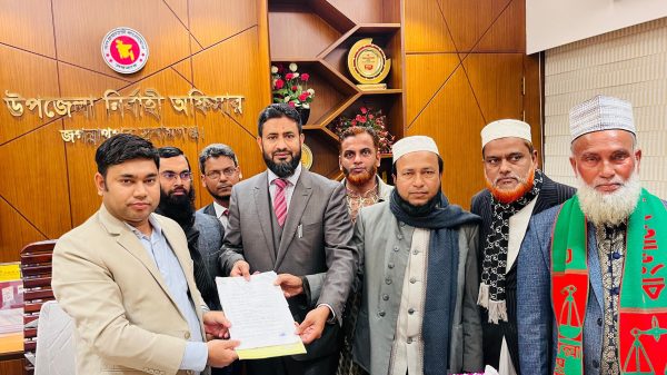আজ সোমবার (২৯ ডিসেম্বর) বিকেলে তিনি জগন্নাথপুর উপজেলা নির্বাহী কর্মকর্তা ও নির্বাচন সহকারী রিটার্নিং কর্মকর্তা বরকত উল্লাহর কার্যালয়ে উপস্থিত হয়ে মনোনয়নপত্র জমা দেন। এসময় নির্বাচন পরিচালনা কমিটির পরিচালক সুনামগঞ্জ জেলা জামায়াতের সহকারি সেক্রেটারী প্রিন্সিপাল আব্দুল কবির, শান্তিগঞ্জ উপজেলা জামায়াতের আমীর হাফিজ আবু খালেদ, জগন্নাথপুর উপজেলা জামায়াতের আমীর মাওলানা লুৎফুর রহমান, জগন্নাথপুর উপজেলা পেশাজীবি কমিটির সভাপতি মোহাম্মদ কবীর উদ্দিন ও জামায়াত নেতা কাজী নুরুল হক উপস্থিত ছিলেন।