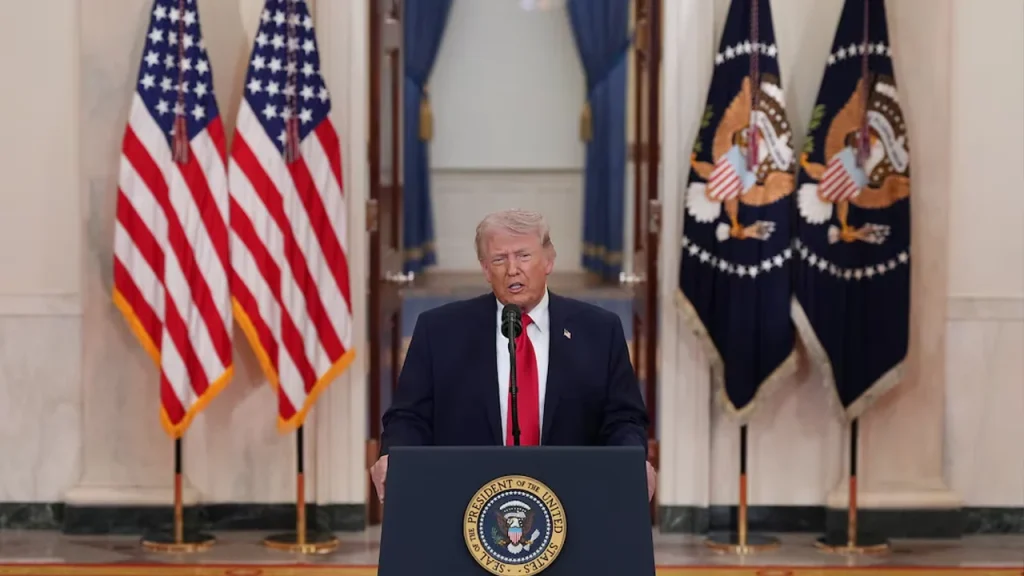 ভাষণে ট্রাম্প বলেন, ‘আমরা কাজটি শেষ করব। আমরা এখন খুব কাছাকাছি।’ তিনি মধ্যপ্রাচ্যের মিত্র দেশগুলোর প্রতি কৃতজ্ঞতা প্রকাশ করেছেন। ট্রাম্প বলেন, ‘আমি আমাদের মধ্যপ্রাচ্যের মিত্রদের ধন্যবাদ জানাই বিশেষ করে ইসরাইল, সৌদি আরব, কাতার, সংযুক্ত আরব আমিরাত এবং বাহরাইনকে। তারা অসাধারণ ভূমিকা রেখেছে, এবং আমরা কোনোভাবেই তাদের ব্যর্থ হতে দেব না।’