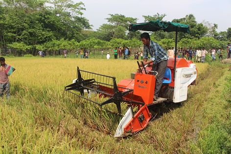 জগন্নাথপুরের নলুয়ার হাওরে প্রথমবারের মতো কমবাইন্ড হারভেস্টার মেশিনে ধান কাটা