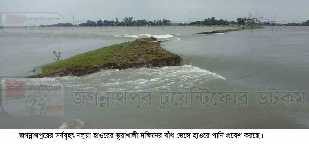 জগন্নাথপুর উপজেলা কৃষি কর্মকর্তা আসাদুজ্জামান জানান, চলতি বছর এ উপজেলার নলুয়া ও মইয়ার হাওরসহ ছোট বড় ১৫টি হাওরে ২৫ হাজার হেক্টর বোরো ফসল চাষাবাদ করা হয়েছে। এর মধ্যে শিলাবৃষ্টিতে কিছু ফসল ক্ষতিগ্রস্থ হয়েছে। রোববার ভোরে বাঁধের উপর দিয়ে হাওরে পানি প্রবেশ করছে। ফসলের ক্ষয়ক্ষতি এখনও নির্নয় করা যায়নি।